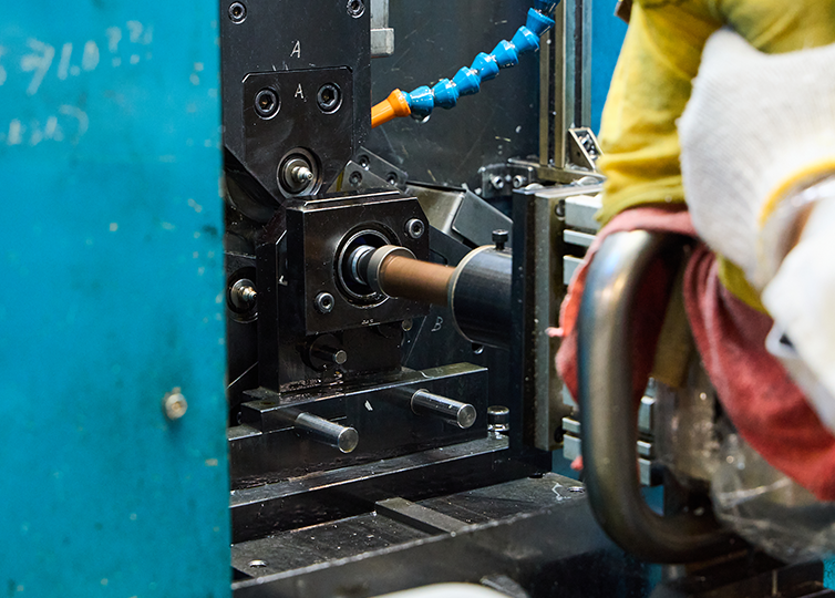 また一般的な転造機に比べ、短尺のパイプに対しても加工が可能で短尺から長尺まで幅広いパイプ長さに対応することが可能です。